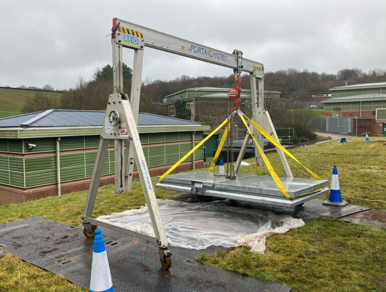 The covers weighed almost two tonnes; therefore, a crane was the preferred method to lift and position them into place. However, a 40t weight restriction on the access bridge forced the team to employ an alternative solution in the form of a wheeled gantry.