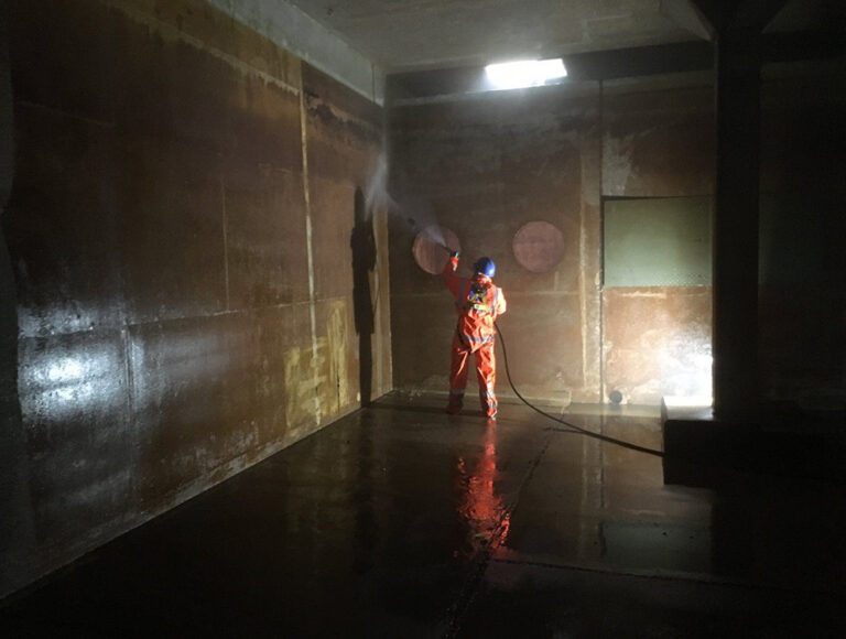 In the first cell all of the internal joints, including the roof wall joint were prepped and over-banded as the existing seals had passed the serviceable life span. The outlet pipework was also prepped and coated with a polyurethane coating to prevent further corrosion. These works were then repeated on the second cell. Both cells were then cleaned and returned to service.