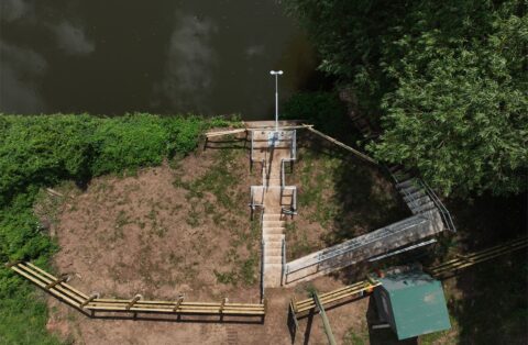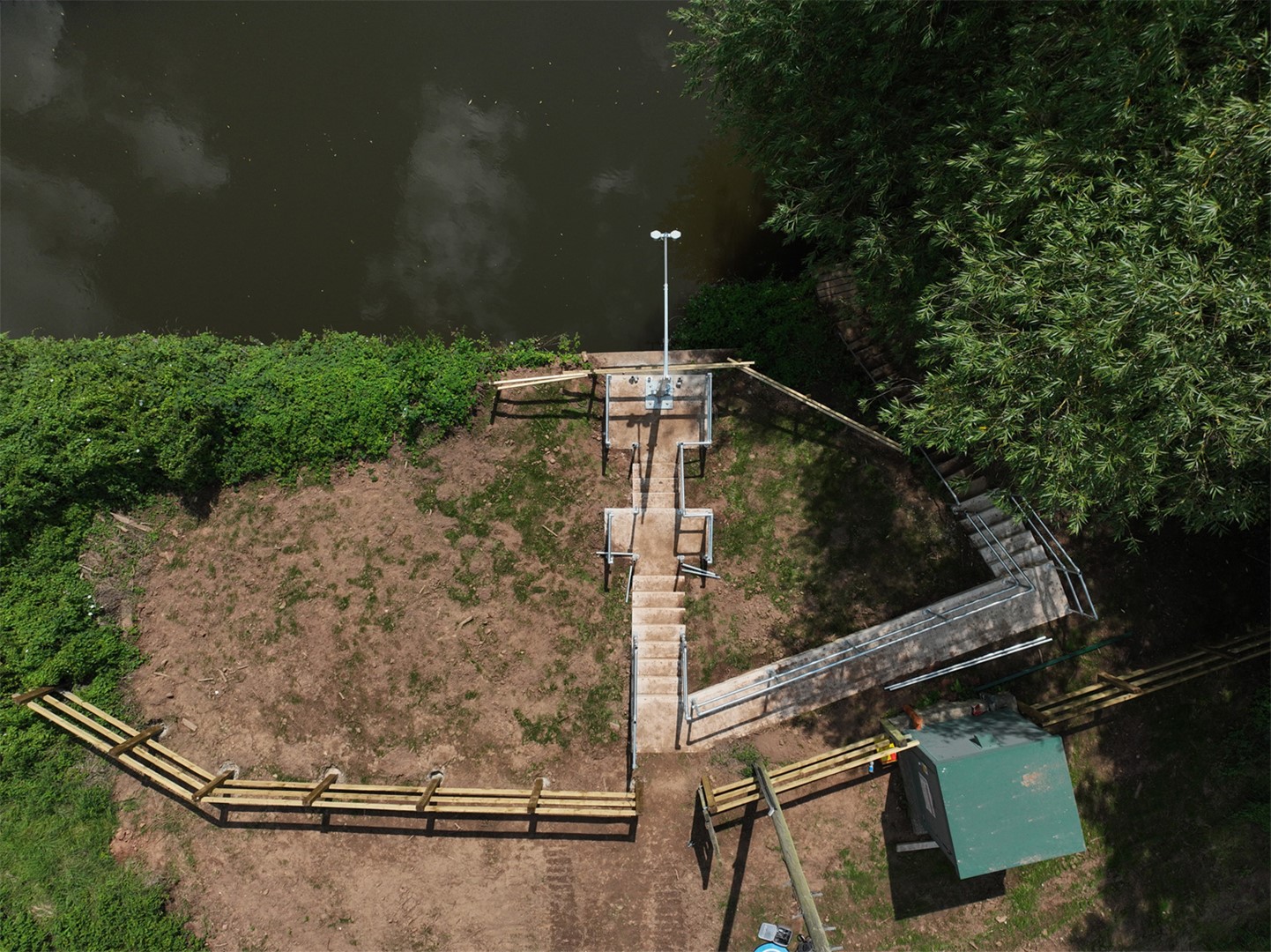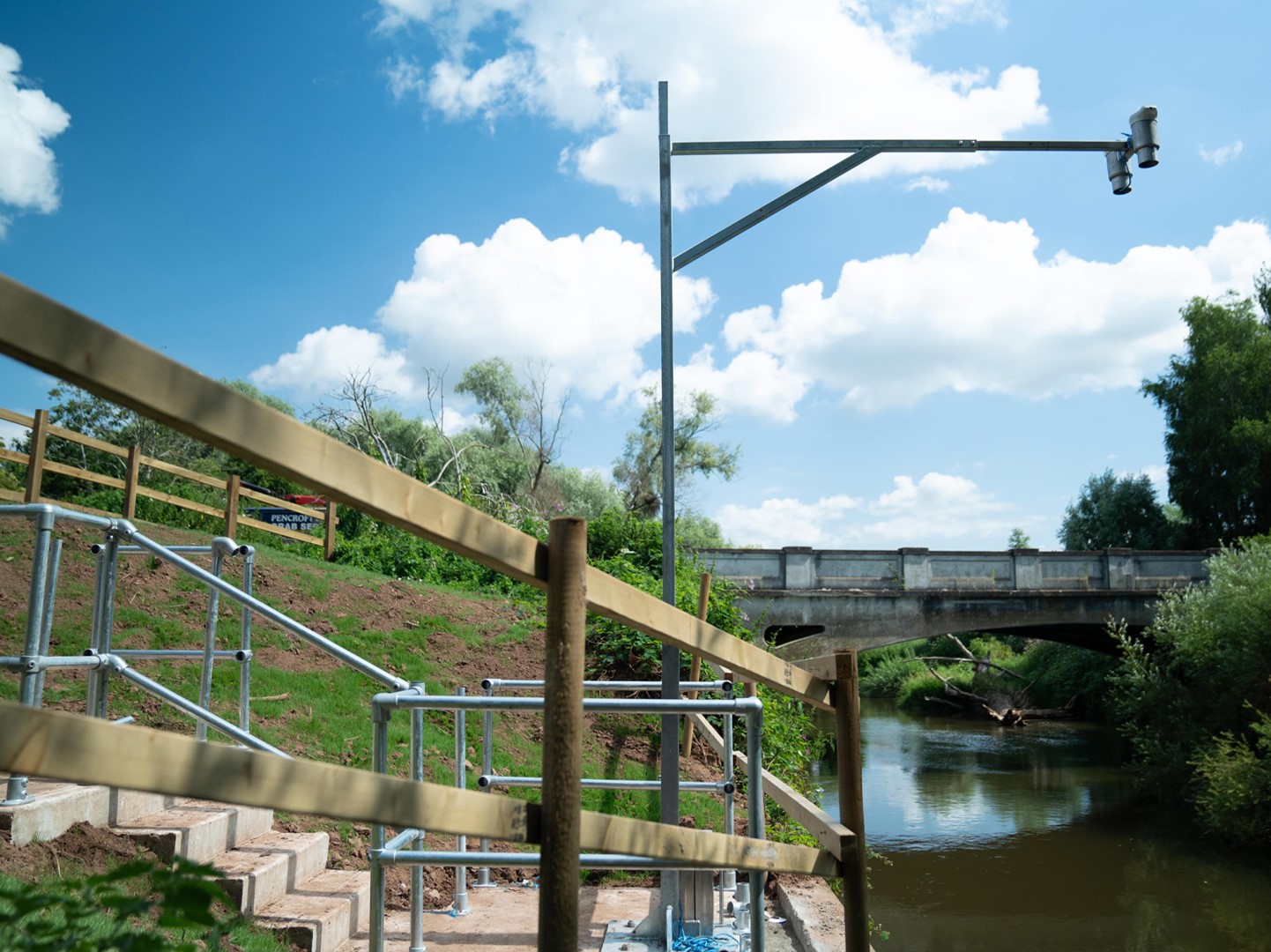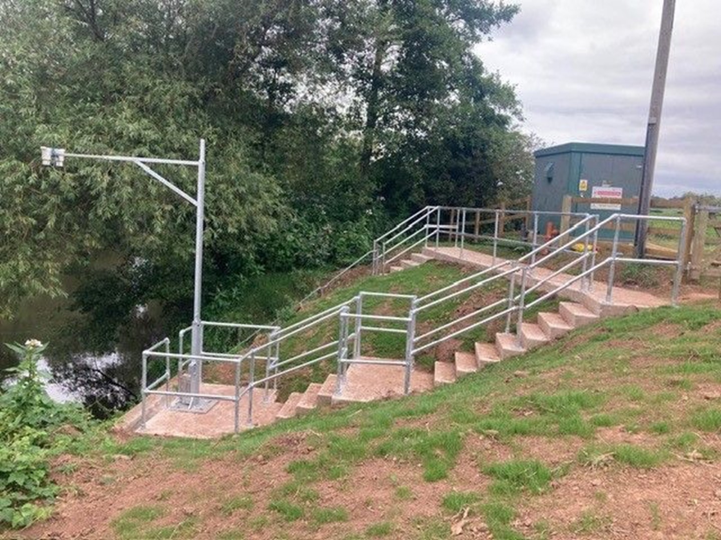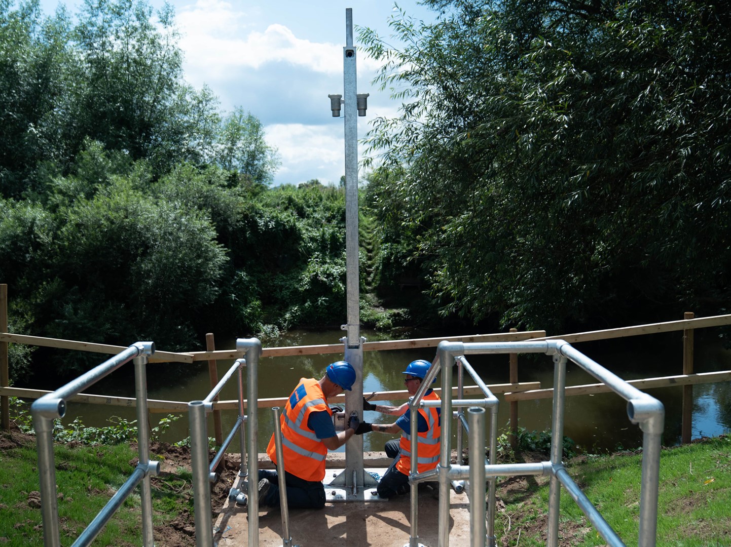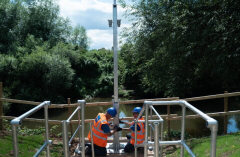 The bespoke pole, arm and bracket were then installed alongside the embankment wall, with the design allowing the pole to be lowered safely for maintenance.