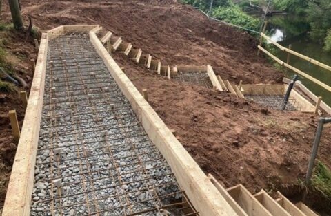 A seven-metre channel was cut for 100mm diameter ducting to connect the radar pole to the control kiosk. Concrete stairs, tube clamp hand-railing and fencing were installed to create a safe access route, replacing the original timber design to provide greater durability against high water.