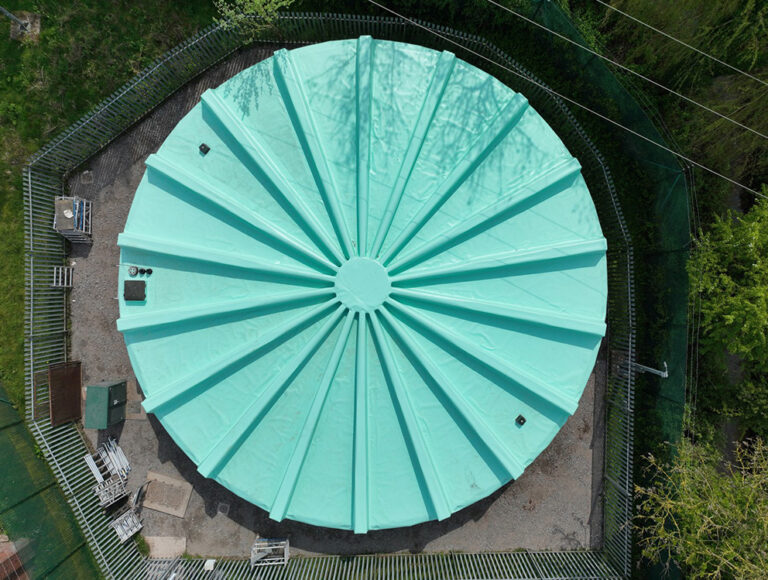 Installing the liner on the panelled circular roof required meticulous attention to detail and involved carefully measuring, pre-cutting and intrusion welding hundreds of pieces of Flagon. Once the installation was complete, the roof underwent MIT-sensor testing, a flood test and a clean and chlorination.