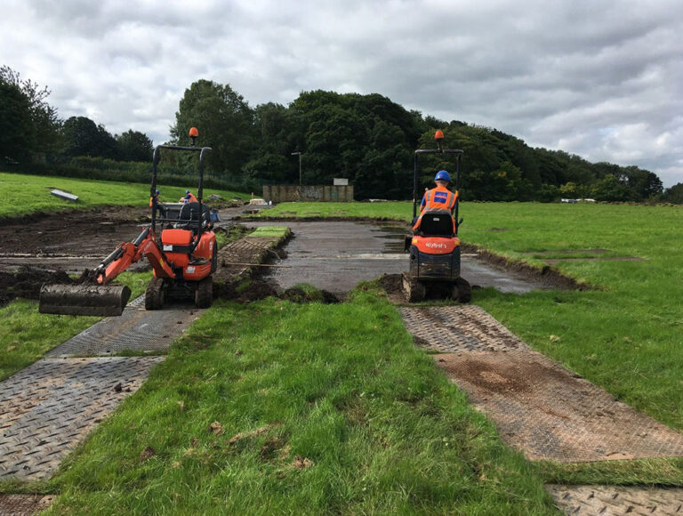 The team prepared the roof by removing the existing overburden, using a long reach excavator to remove soil from the edges of the tank to reduce time and ensure works stayed within programme. The team utilised five track barrows and two micro-diggers to minimise weight on the roof and hired a 7-tonne track dumper to minimise detrition on existing ground, saving money on the reinstatement.