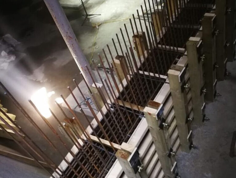 Initial works involved preparation to the reservoir floor by scabbling the surface. Two lines of starter bars were then drilled and fixed into the floor slab and walls to allow for the installation of the formwork for the kicker upstand. Once sufficient reinforcement and shuttering was in place, the kicker was poured and left to cure.