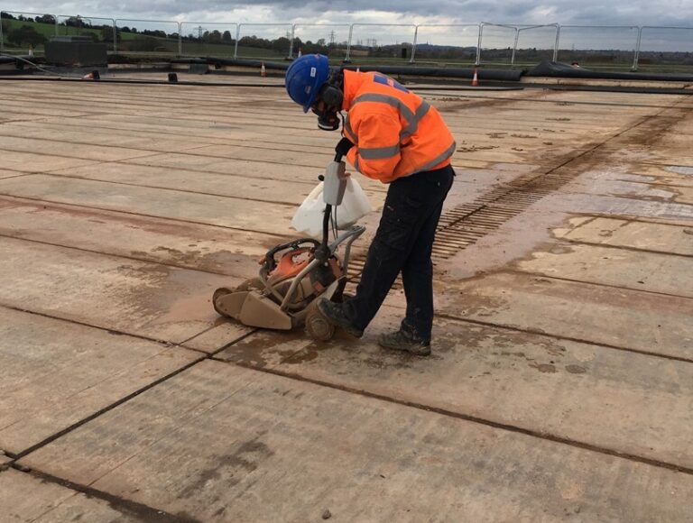 Overburden was first removed by hand, as specified on the tender, before a structural engineer was consulted to ascertain weight-bearing capability of the roof. This enabled the use of specialist machinery to continue to expose the concrete tank, remove the existing coatings and prepare the roof for the new membrane.